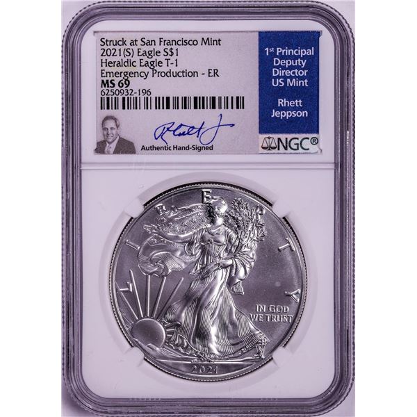 2021(S) Ty. 1 $1 American Silver Eagle Coin NGC MS69 Jeppson Signed Emergency Release204 - 2021(S) Ty. 1 $1 American Silver Eagle Coin NGC MS69 Jeppson Signed Emergency Release