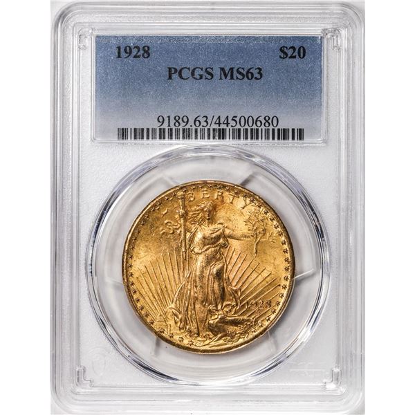 1928 $20 St. Gaudens Double Eagle Gold Coin PCGS MS63208 - 1928 $20 St. Gaudens Double Eagle Gold Coin PCGS MS63