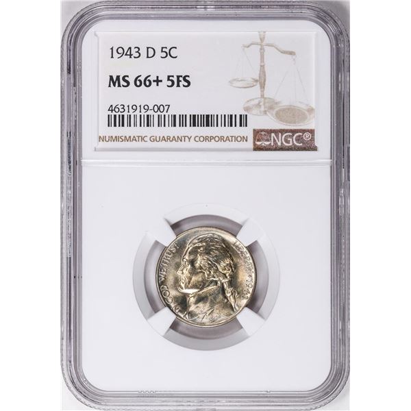 One 1943-D Jefferson Nickel Coin NGC MS66+ 5FS. NGC Certified.