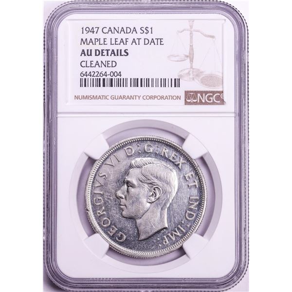 One 1947 Maple Leaf at Date Canada $1 George VI Silver Dollar Coin NGC AU Details. NGC Certified.
