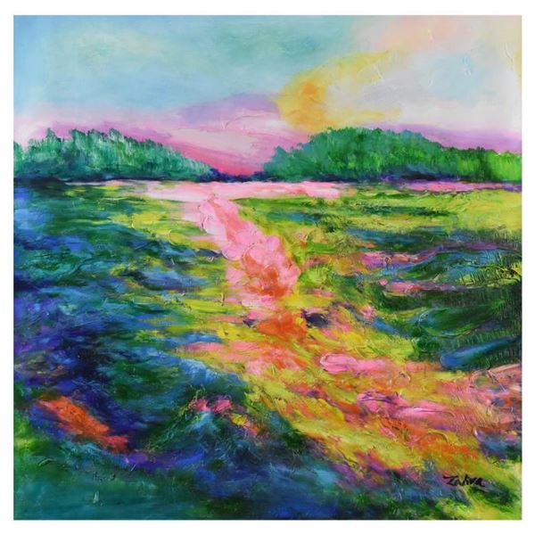 This is an original oil painting on canvas by Zahra, hand signed by the artist. Includes Letter of Authenticity. Measures approx. 44" x 44"...