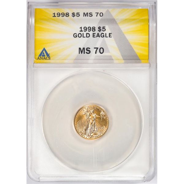 One 1998 $5 American Gold Eagle Coin ANACS MS70. ANACS Certified.