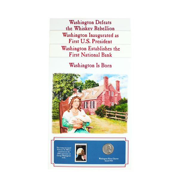 One Lot of (4) Washington Quarter & Stamp Sets.