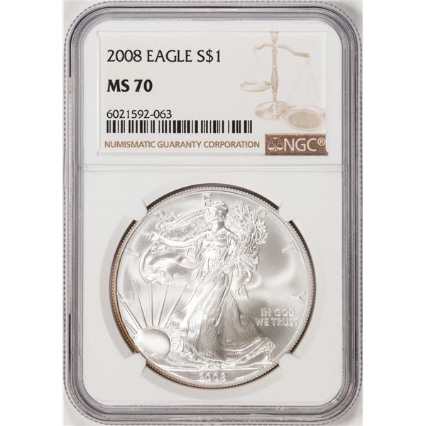 2008 $1 American Silver Eagle Coin NGC MS7013 - 2008 $1 American Silver Eagle Coin NGC MS70
