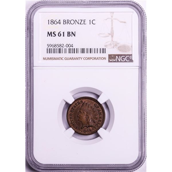One 1864 Bronze Indian Head Cent Coin NGC MS61BN. NGC Certified.