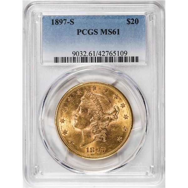 1897-S $20 Liberty Head Double Eagle Gold Coin PCGS MS6118 - 1897-S $20 Liberty Head Double Eagle Gold Coin PCGS MS61