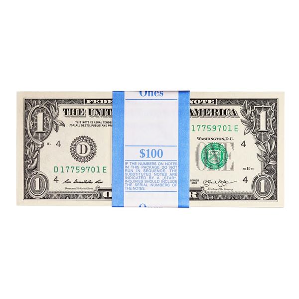 Pack of (100) Uncirculated Consecutive 2013 $1 Federal Reserve Notes Cleveland268 - Pack of (100) Uncirculated Consecutive 2013 $1 Federal Reserve Notes Cleveland