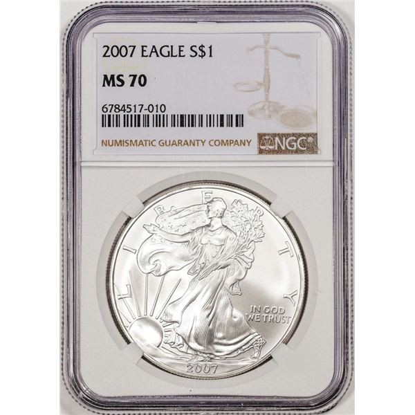 One 2007 $1 American Silver Eagle Coin NGC MS70. NGC Certified.
