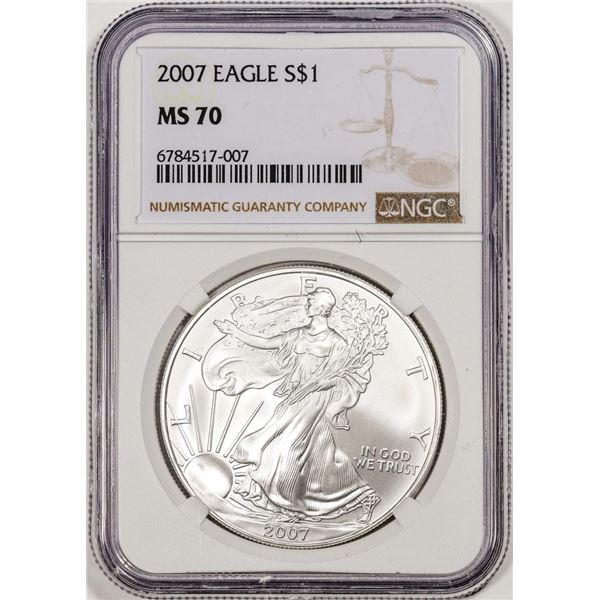 One 2007 $1 American Silver Eagle Coin NGC MS70. NGC Certified.