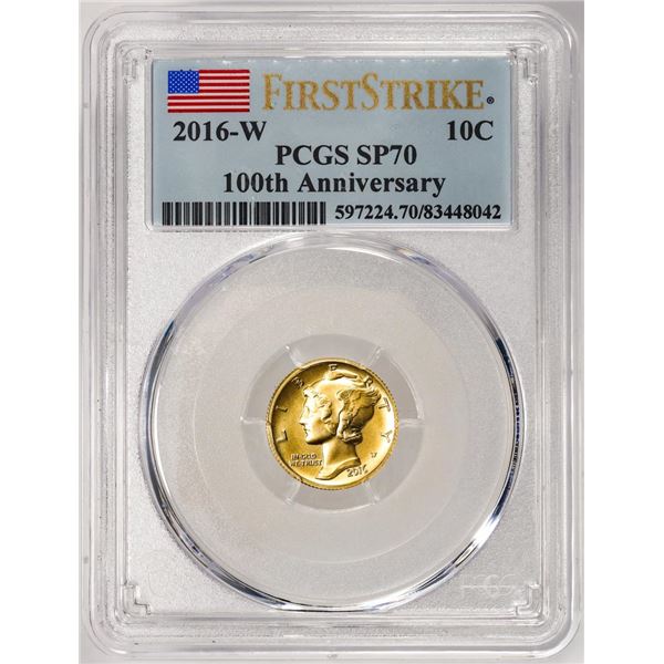 2016-W Mercury Dime Centennial Commemorative Gold Coin PCGS SP70 First Strike