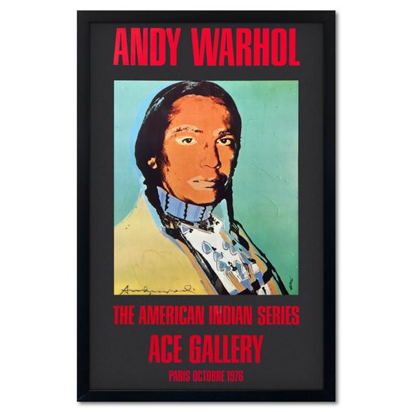 "The American Indian Series" is a vintage poster (1976) by Andy Warhol (1928-1987) from the Ace Gallery, Los Angeles, CA, hand signed by t...