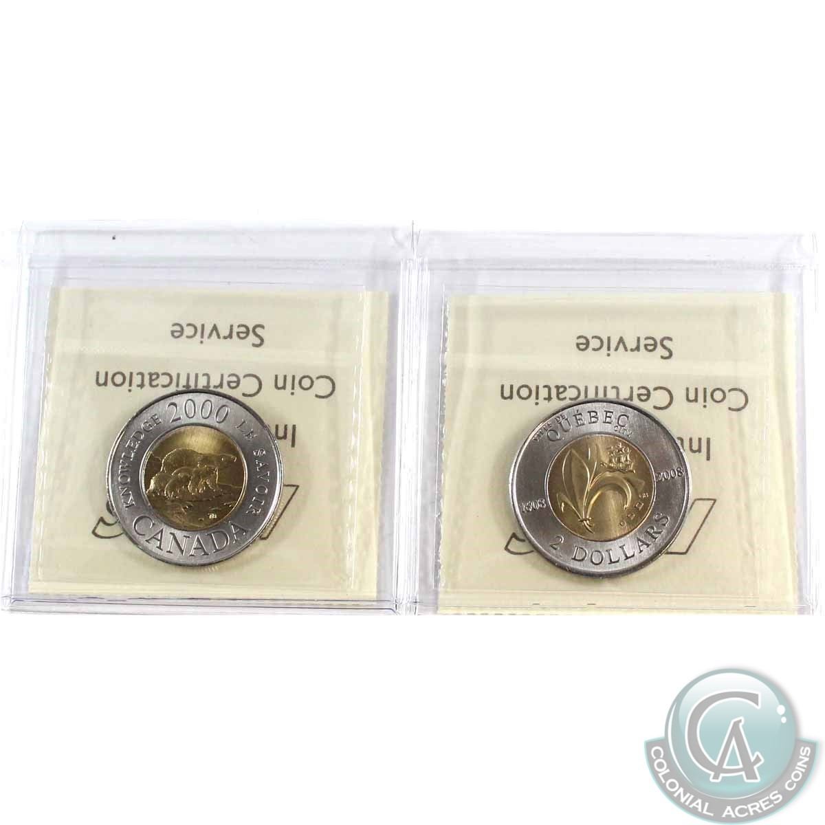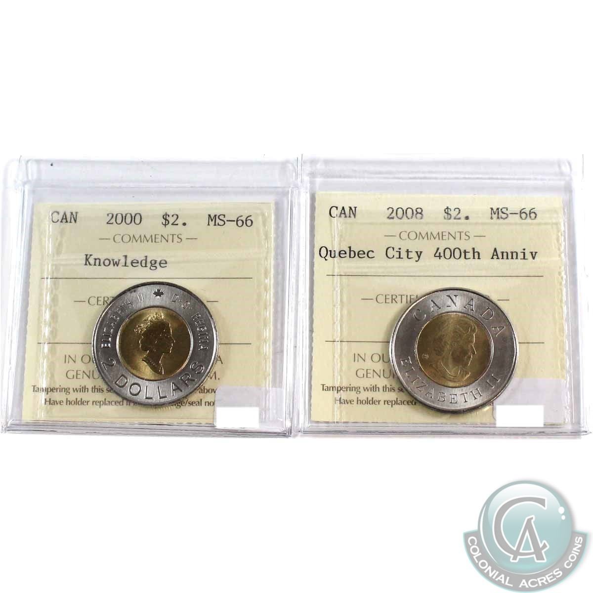 2000 Knowledge & 2008 Quebec City Canada $2 ICCS Certified MS-66. 2pcs