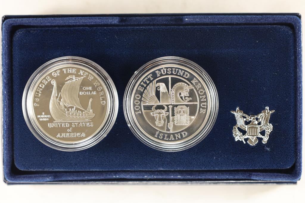 SILVER 2 COIN SET, US AND ICELANDIC.