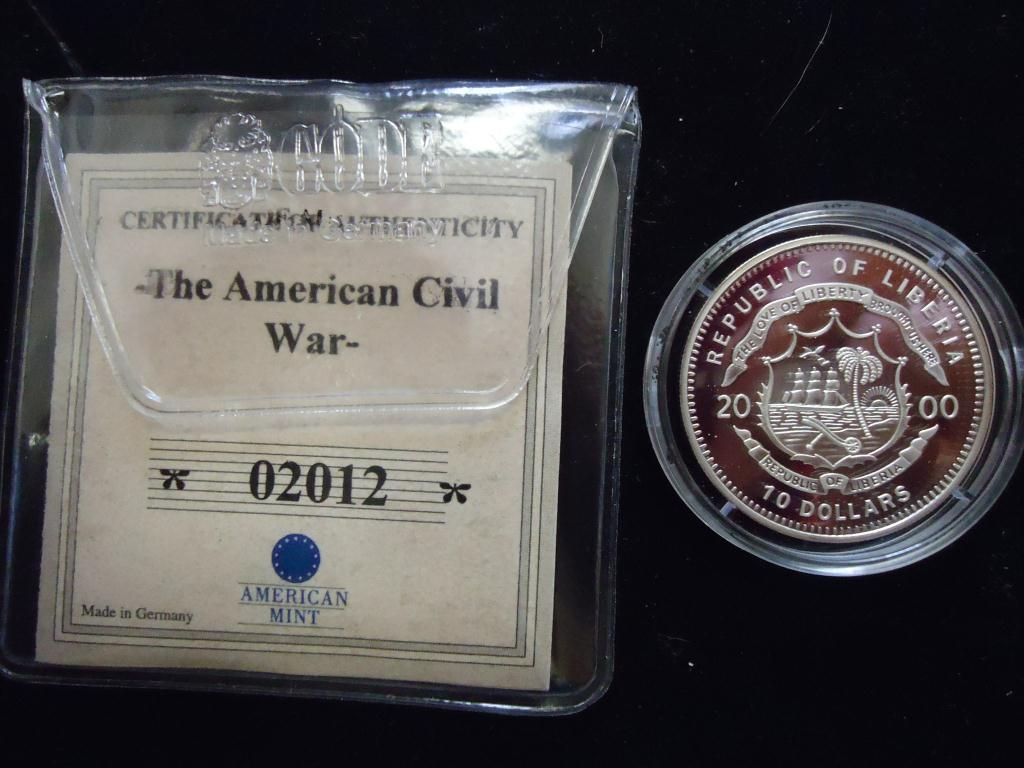 2000 LIBERIA $10 PROOF SILVER "AMERICAN CIVIL WAR"