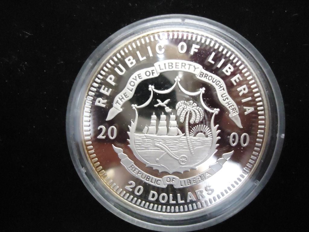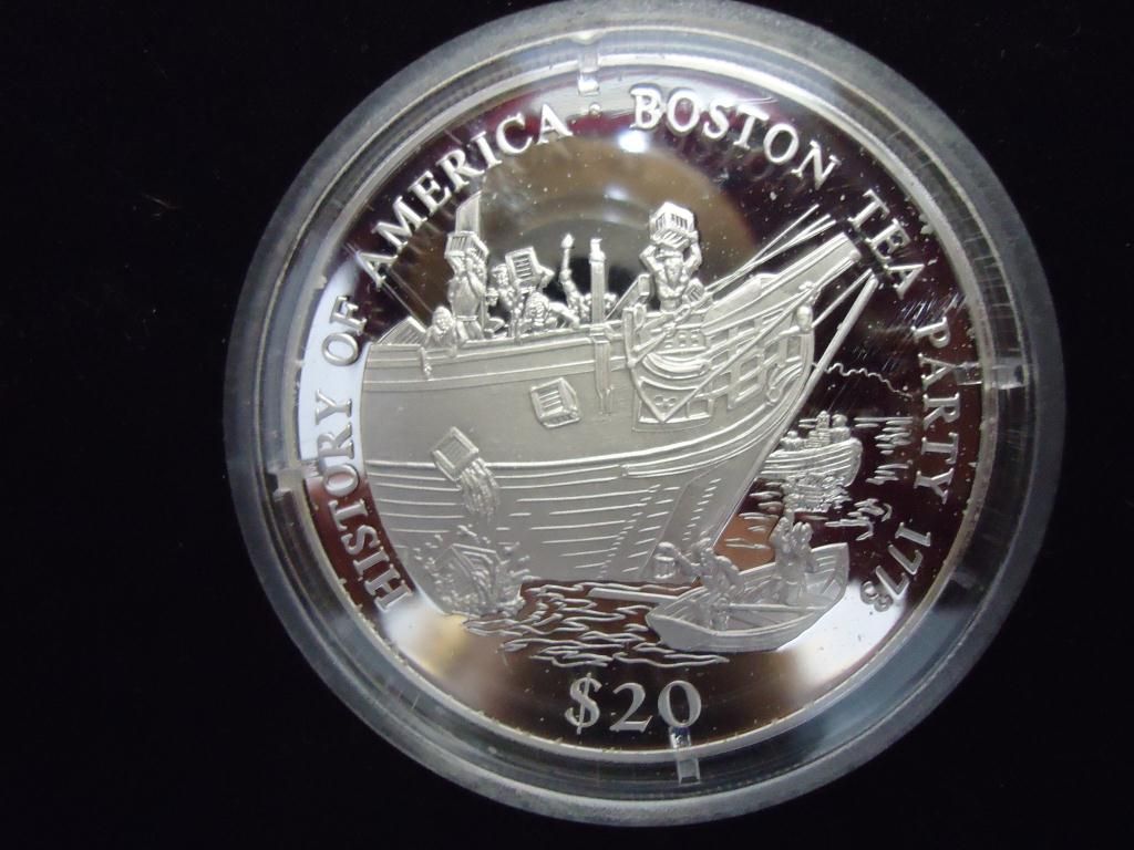 2000 LIBERIA $20 SILVER PROOF (BOSTON TEA PARTY)