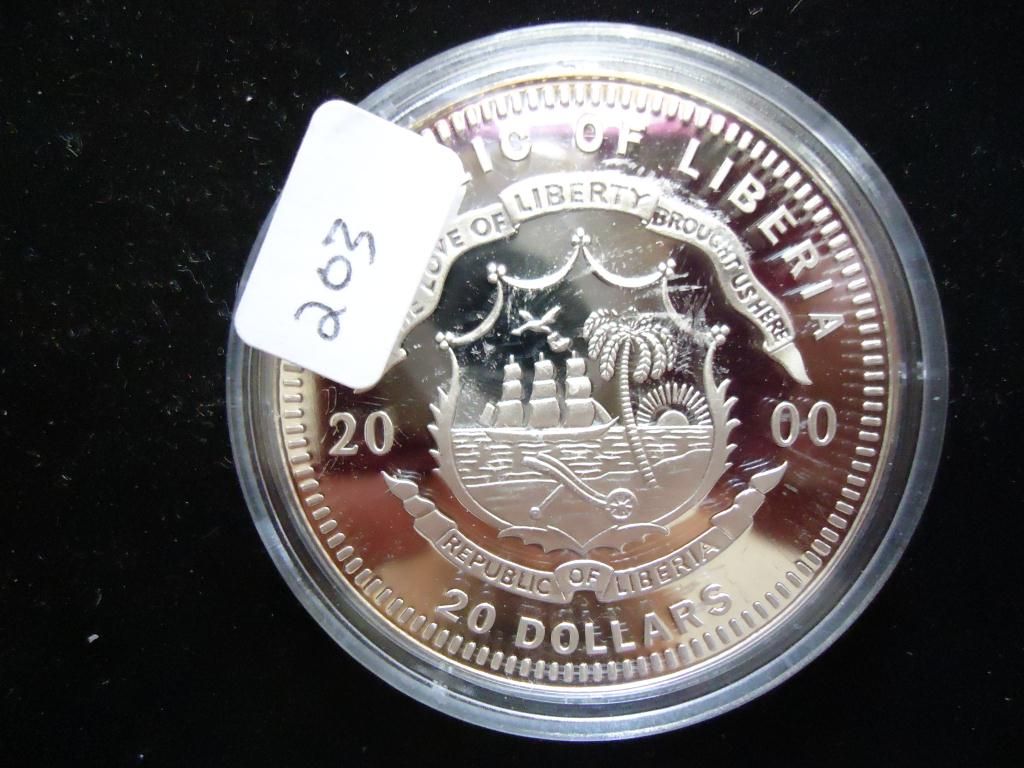 2000 LIBERIA $20 SILVER PROOF PRESIDENT HARDING