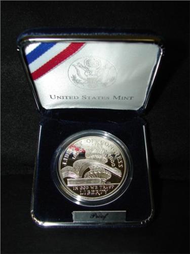 2000 U.S. MINT LIBRARY OF CONGRESS PROOF SILVER DOLLAR COIN. Coin is in case with box.