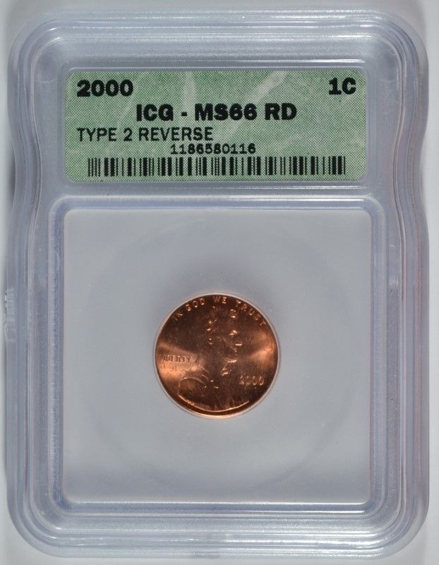 2000 LINCOLN CENT ICG MS-66 RD (TYPE 2 REVERSE)