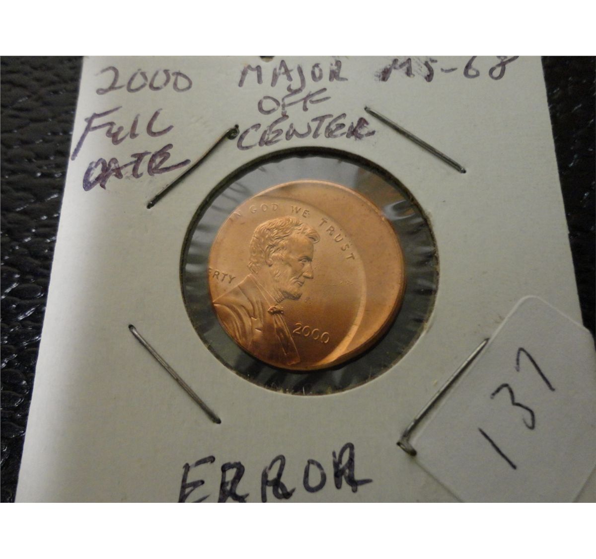 2000 LINCOLN CENT OFF CENTER FULL DATE MAJOR ERROR