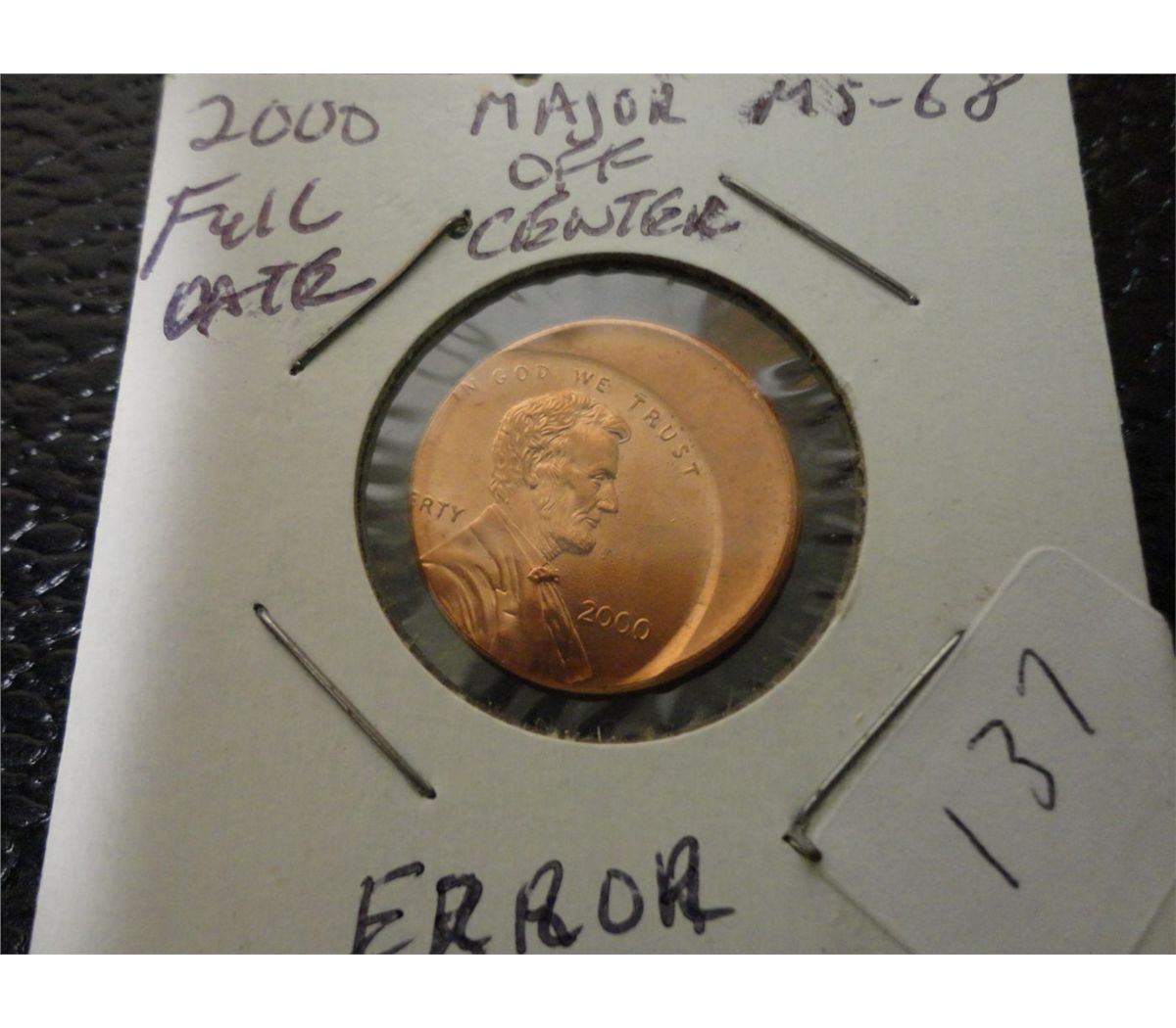 2000 LINCOLN CENT OFF CENTER FULL DATE MAJOR ERROR