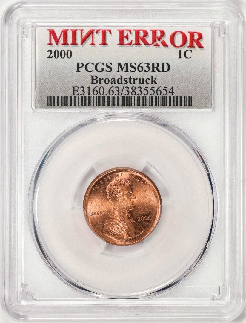 2000 Lincoln Memorial Cent Coin Mint Error Broadstruck PCGS MS63RD