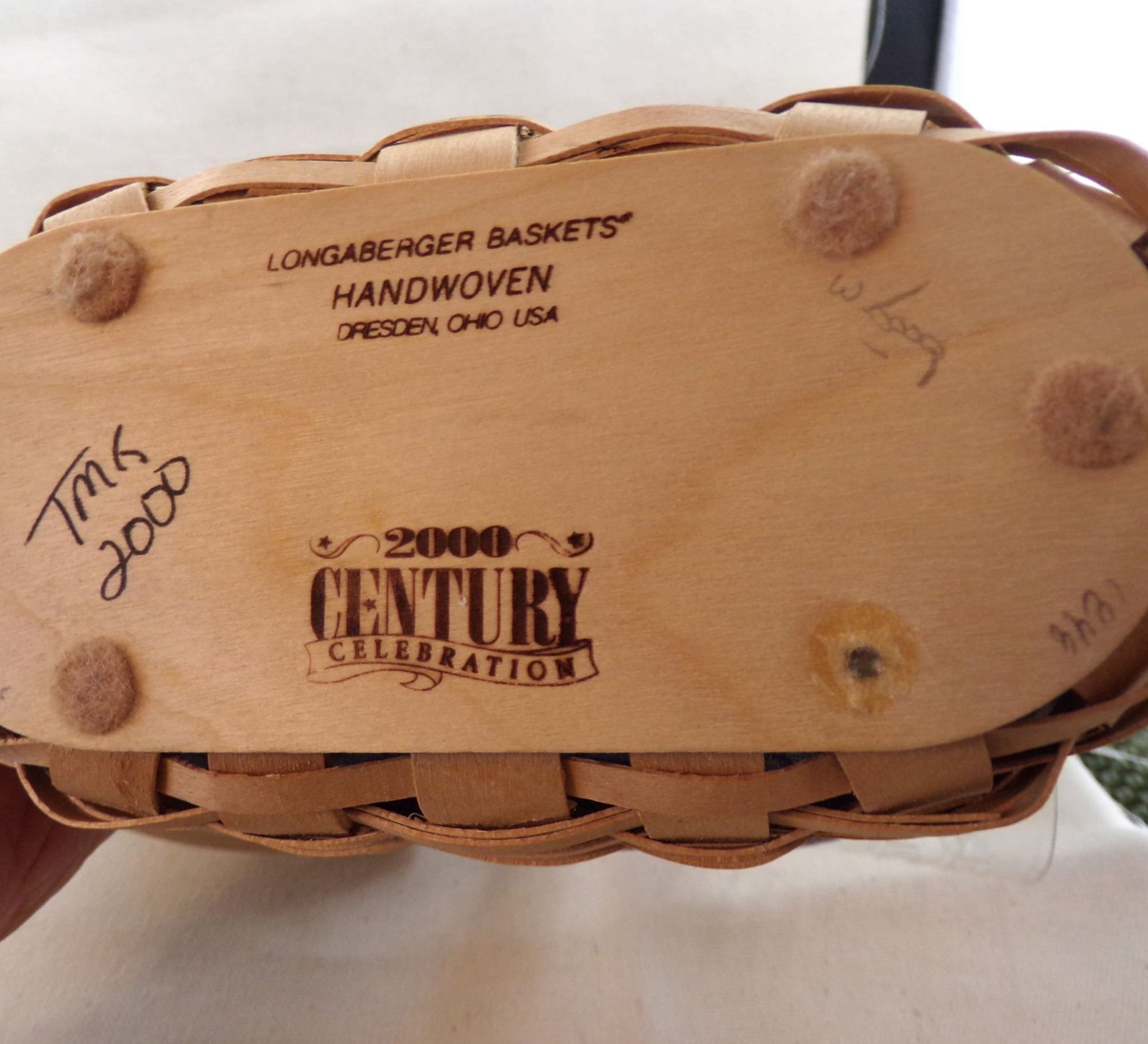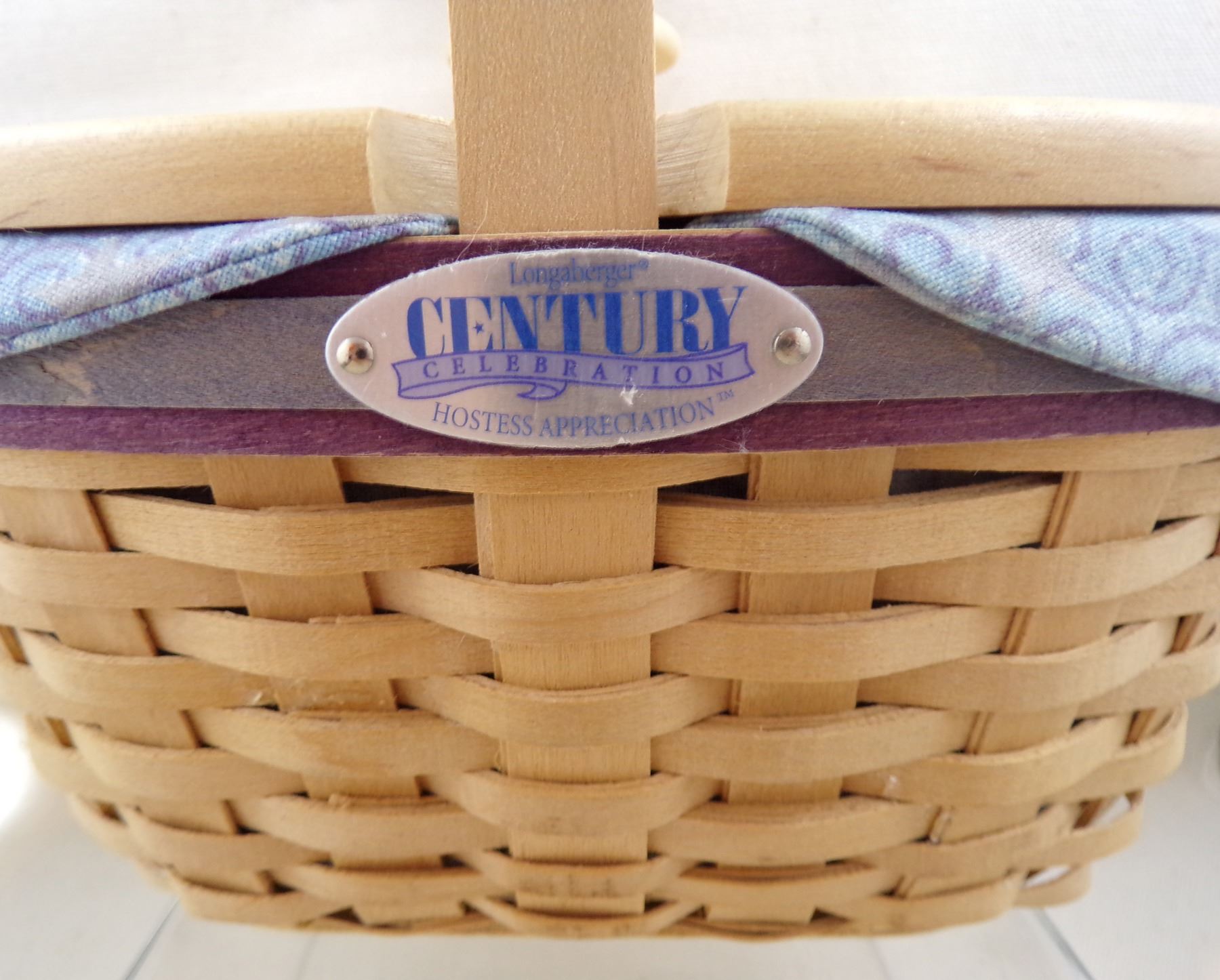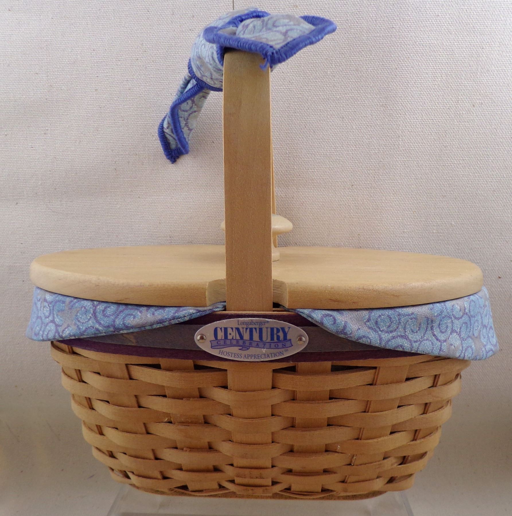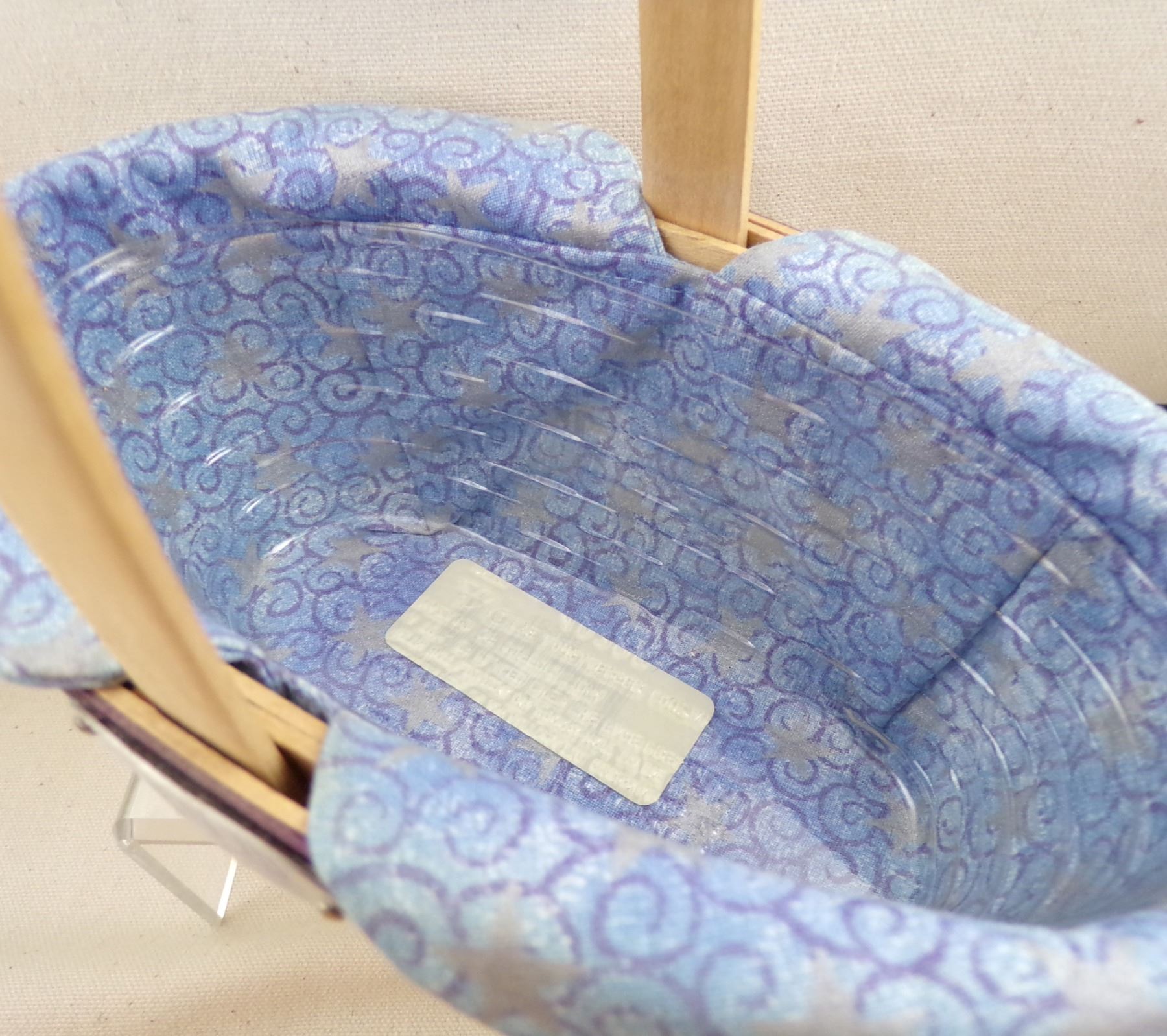 2000 Longaberger Celebration Mini Basket, mini 2000 Celebration Hostess Appreciation gift, complete with plastic liner, fabric lining, signed, mint condition, measures 8'' x 4.5'' x 7.75''H (including handle)