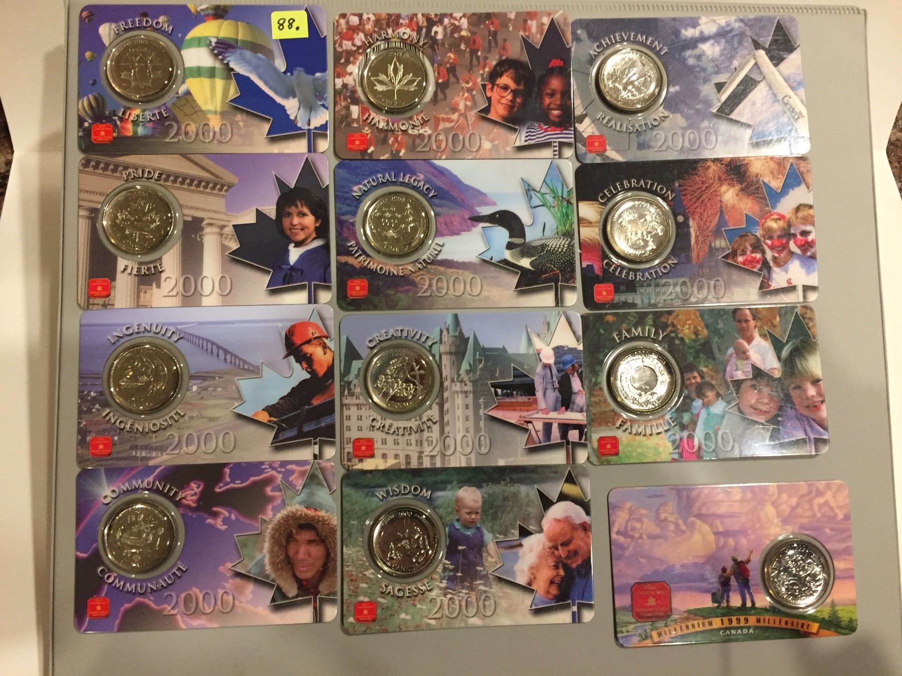 2000 Millennium Quarters (11) & 1999 Quarter in Orig. Cards