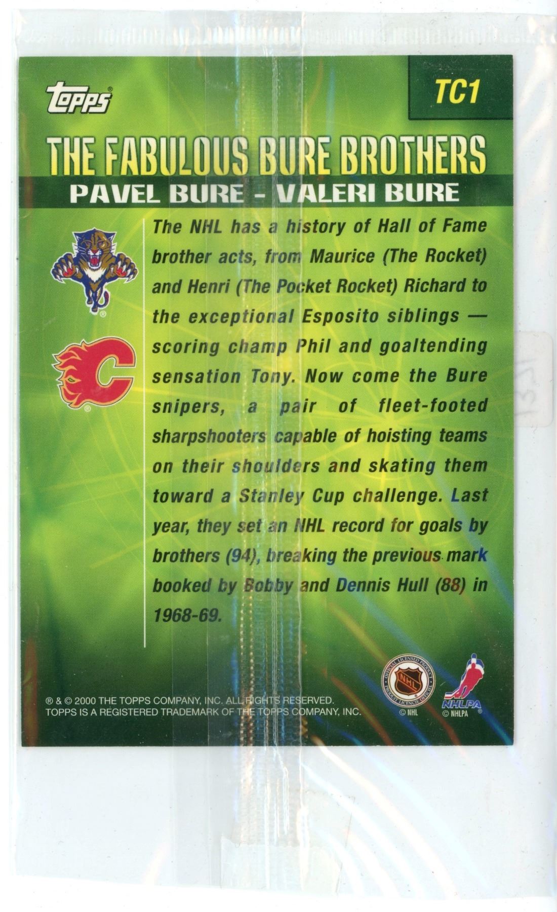 2000 OPC, Pavel & Valeri Bure - The Fabulous Bure brothers, oversized NHL card