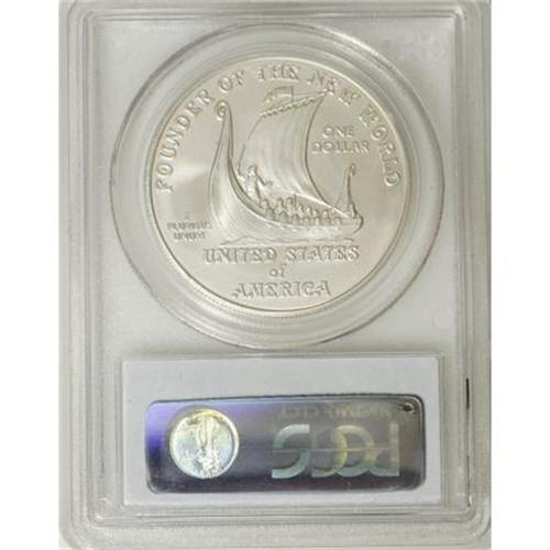 <B>2000-P $1 Leif Ericson Silver Dollar MS70 PCGS.</B></I> PCGS Population (31/0). NGC Census: (0/0). Numismedia Wsl. Price for NGC/PCGS coin in MS70: $240. (#9785)<BR><BR><b>Shipping:</b> Coins & Currency (<a target="_blank" href="http://www.heritageauctions.com/common/shipping.php">view shipping information</a>)
