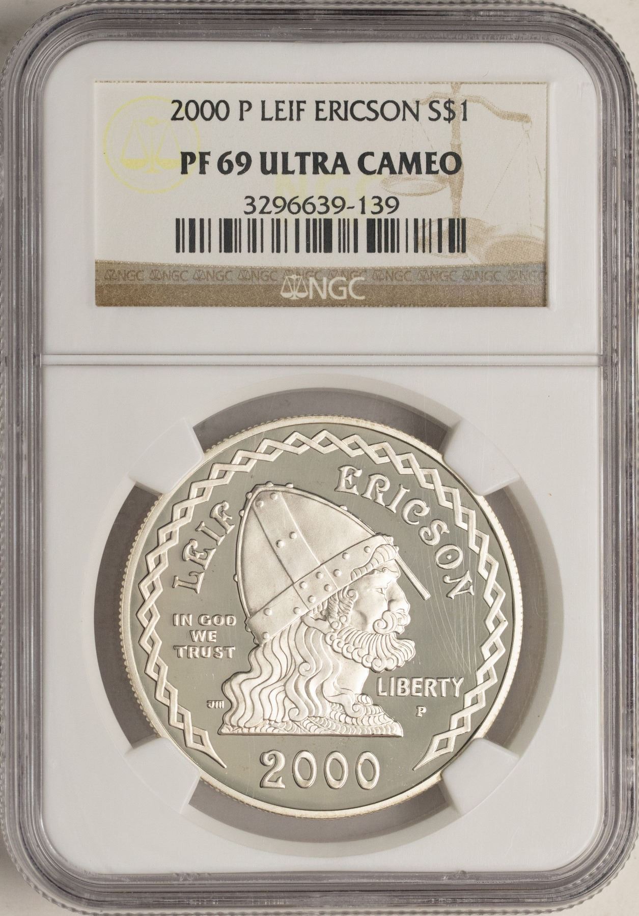 2000-P $1 Proof Leif Ericson Commemorative Silver Coin NGC PF69 Ultra Cameo