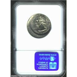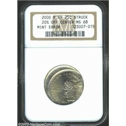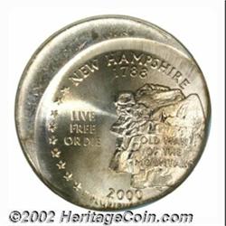 2000-P 25C New Hampshire Statehood Quarter--Struck 20% Off Center--MS68 NGC. Struck off center at approximately 1 o'clock, the surfaces, however, still exhibit a full date and mintmark. Both sides are pristine, and all devices present exhibit razor sharp striking detail. Sprays of pale honey-tan iridescence drift over otherwise bright, untoned features. Important notice: We expect to be auctioning lots at the rate of 200-250 per hour. Sometimes eBay Premier live bid software cannot keep up with that pace, so we strongly recommend that you place a realistic proxy bid now as insurance to avoid disappointment. Also please note that all Heritage/CAA lots purchased through eBay Premier carry a 20% Buyer's Premium. Please make sure you read the Terms and Conditions.