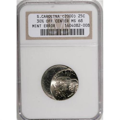 <B>No Date (2000-P) 25C South Carolina Statehood Quarter--30% Off Center--MS68 NGC.</B></I><BR><BR><b>Shipping:</b> Coins & Currency (<a target="_blank" href="http://www.heritageauctions.com/common/shipping.php">view shipping information</a>)