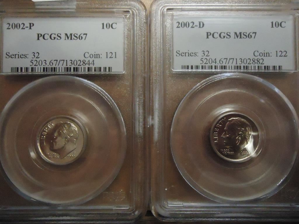 2000-P & D ROOSEVELT DIMES PCGS MS67'S