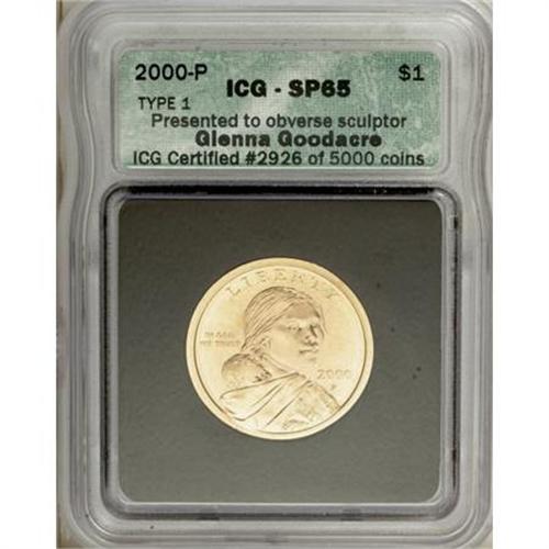 <B>2000-P $1 Type 1 Goodacre SP65 ICG.</B></I> Ex: Presented obverse sculptor Glenna Goodacre. ICG Certified #2926 of 5000 coins.<BR><BR><b>Shipping:</b> Coins & Currency (<a target="_blank" href="http://www.heritageauctions.com/common/shipping.php">view shipping information</a>)