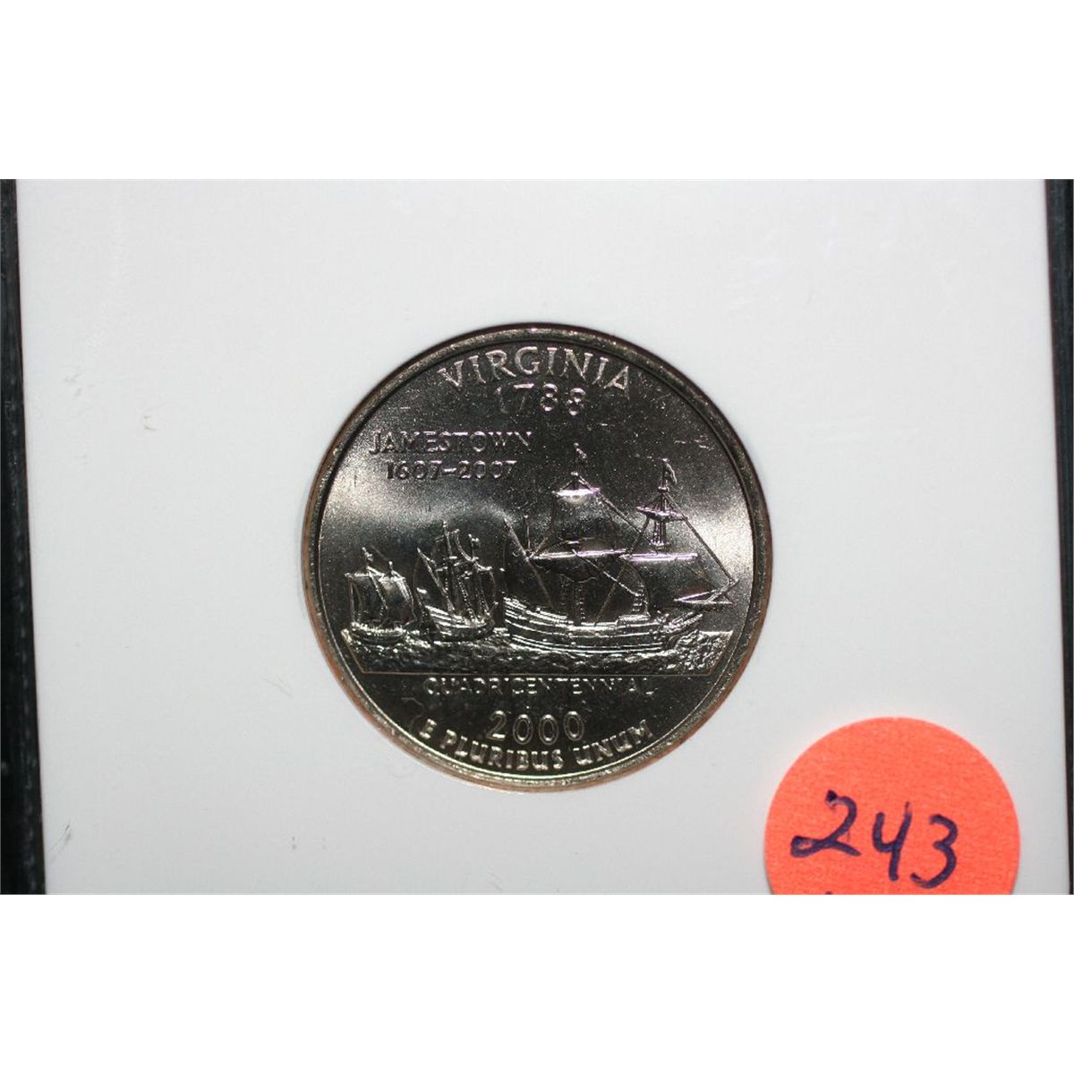 2000-P Virginia State Quarter NGC Graded MS65 First Day of Mintage