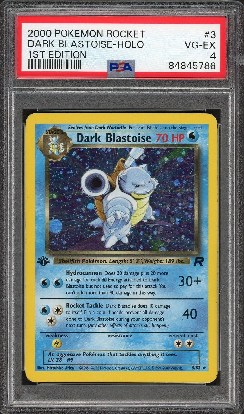 This vintage beautiful Dark Blastoise holo from 1st edition Team Rocket is graded a VERY CLEAN VG-EX from PSA!