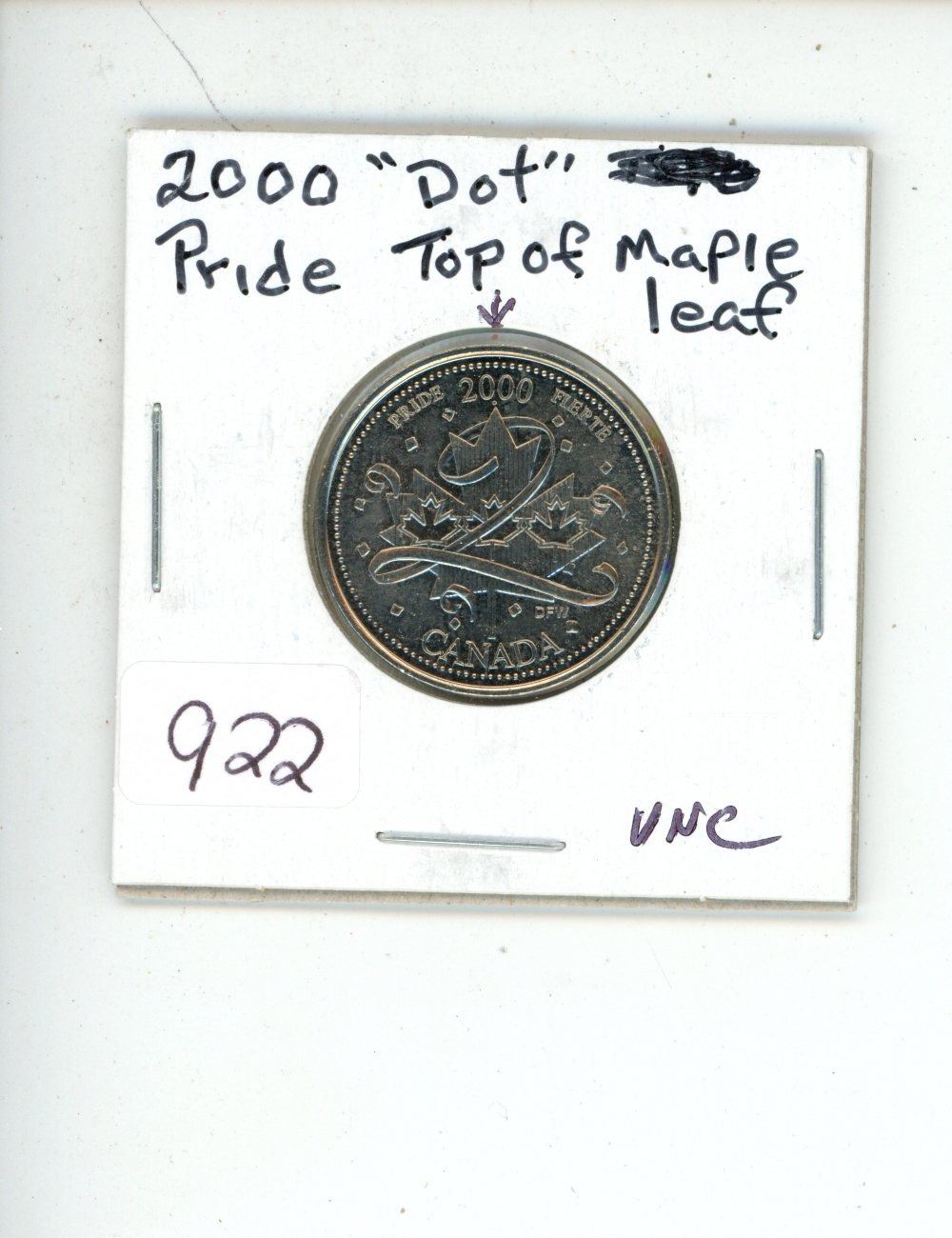 2000 Pride 25 Cents. With Dot above Maple Leaf. Uncirculated. Nice.