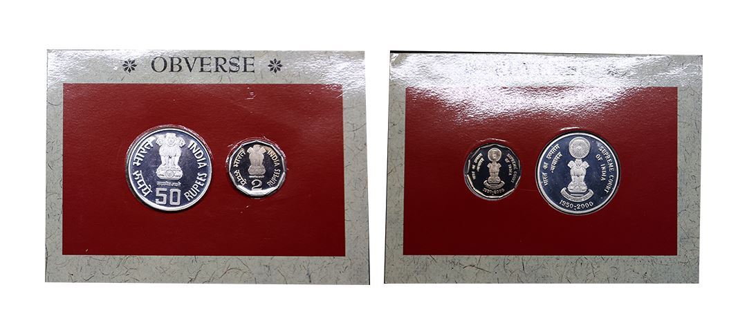 2000 Proof Set, Golden Jubilee of Supreme Court of India, set of 2, Rupees 2 and 50. In immaculate c