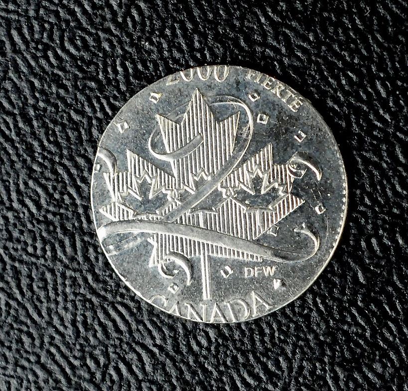 Twenty Five Cents, 2000 "Pride", struck on a ten cent planchet. 2.07 gr, magnetic.