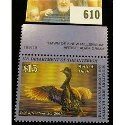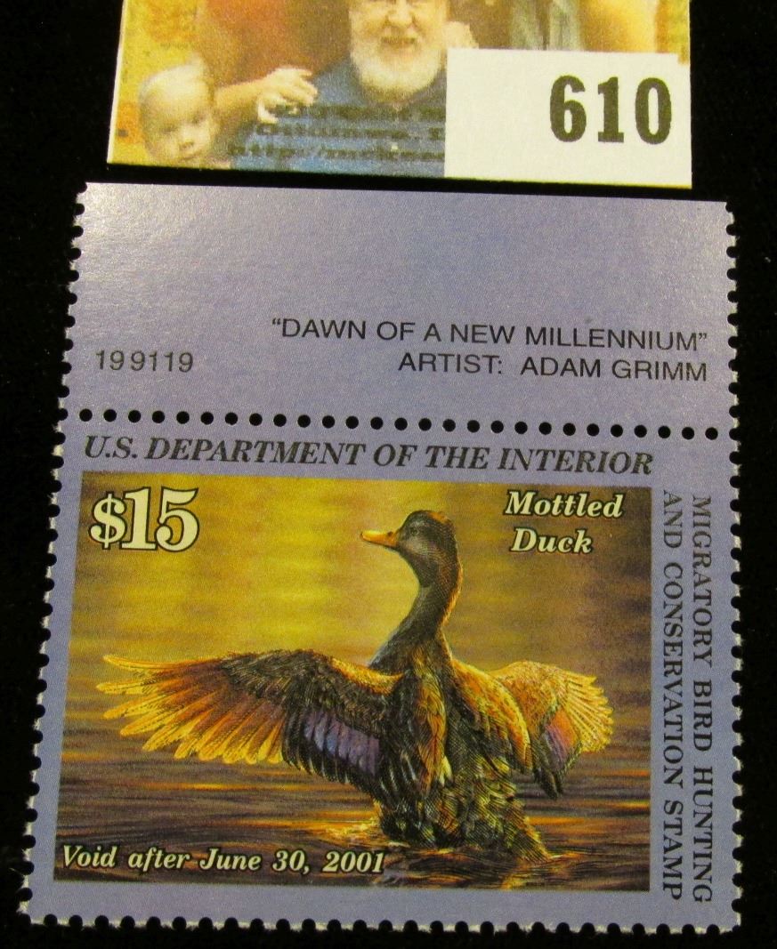 2000 RW 67 Federal Migratory Bird Hunting $15.00 Stamp, unsigned, original gum, NH, VF. Plate number