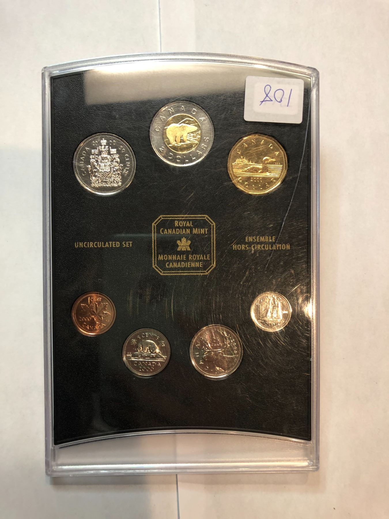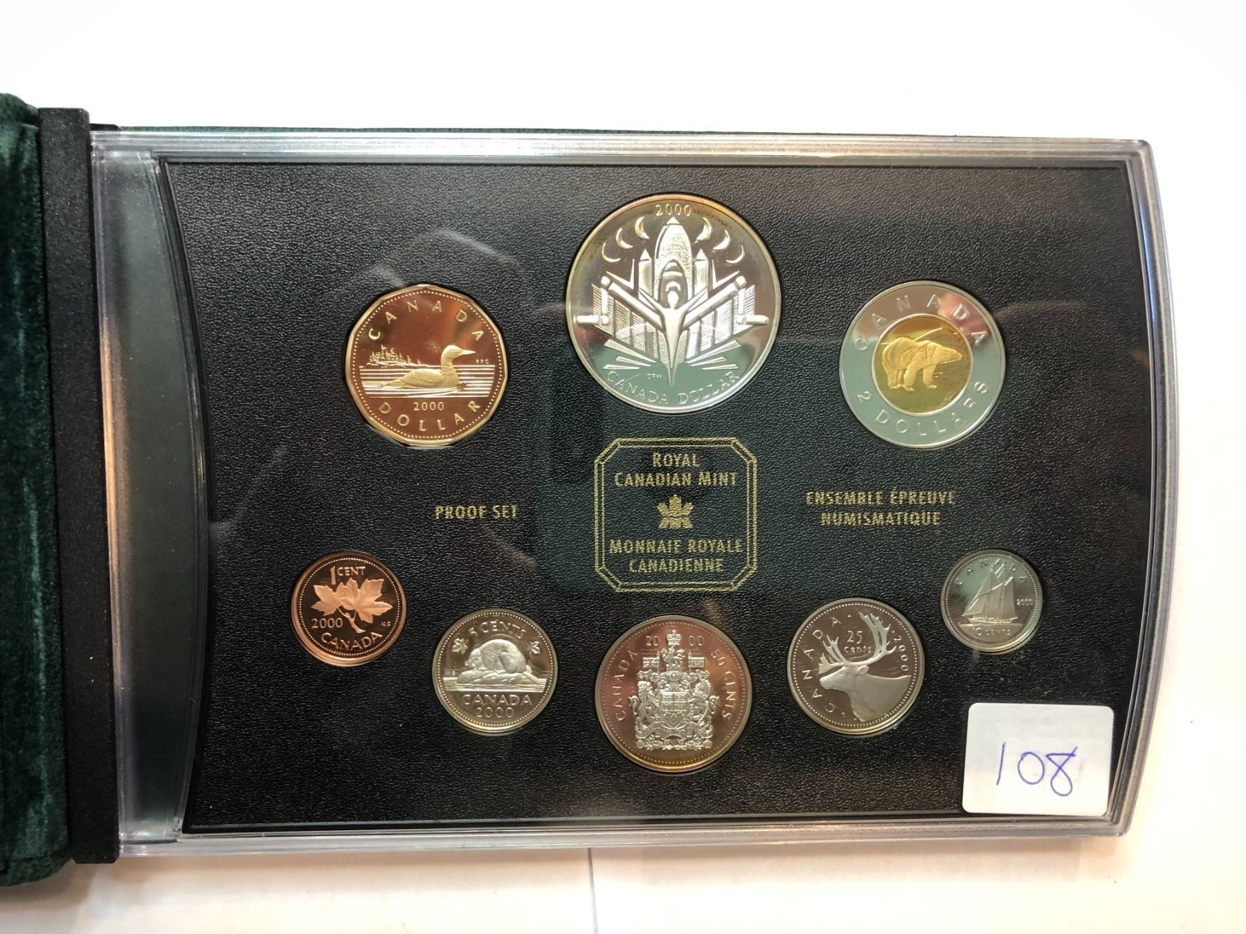 2000 Royal Candian Mint Coin Sets 2000 - Proof Set, total sterling silver weight 56 grams 2000 - Uncirculated Set, no silver value, missing case