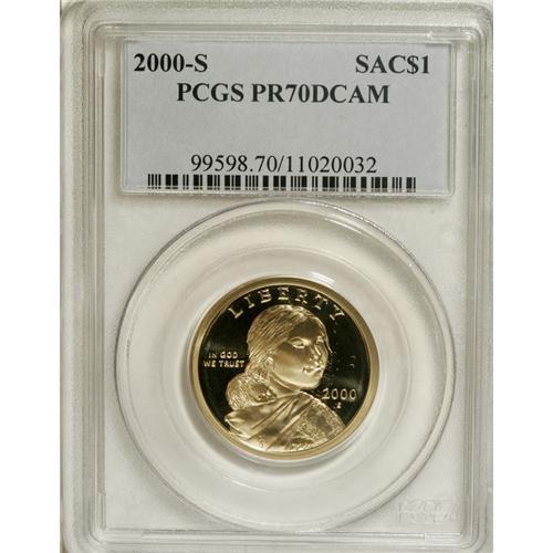 <B>2000-S $1 Sacagawea PR70 Deep Cameo PCGS.</B></I> Splendid gold-on-black surfaces are truly unimprovable. A powerful strike adds to the outstanding eye appeal. Population: 33 in 70 (4/07).<BR><BR><b>Shipping:</b> Coins & Currency (<a target="_blank" href="http://www.heritageauctions.com/common/shipping.php">view shipping information</a>)