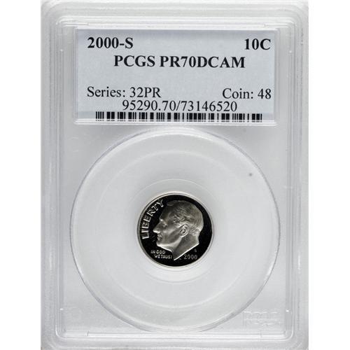 <B>2000-S 10C Clad PR70 Deep Cameo PCGS.</B></I> PCGS Population (47/0). NGC Census: (0/0). Numismedia Wsl. Price for NGC/PCGS coin in PR70: $45. (#95290)<BR><BR><b>Shipping:</b> Coins & Currency (<a target="_blank" href="http://www.heritageauctions.com/common/shipping.php">view shipping information</a>)