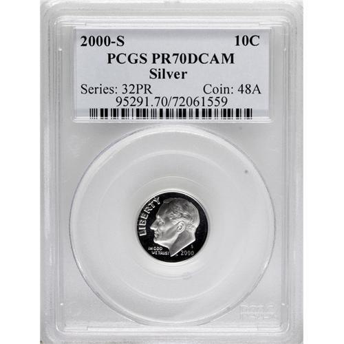 2000-S 10C Silver PR70 Deep Cameo PCGS. PCGS Populatio