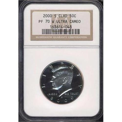 <b>2000-S Kennedy Half Dollar. Clad. NGC graded Proof 70 White Ultra Cameo.</b> There is much to say about the beautiful surfaces of this coin since they are one hundred percent original, indeed perfect 70, a quality almost unimaginable. The mint frost is glowing with intensity over each side's devices. The mirrors are deep, glittery <b>(PCGS # 96912)</b>