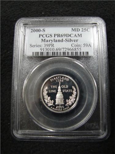 2000-S MARYLAND QUARTER. Graded by PCGS. PR 69 DCAM.