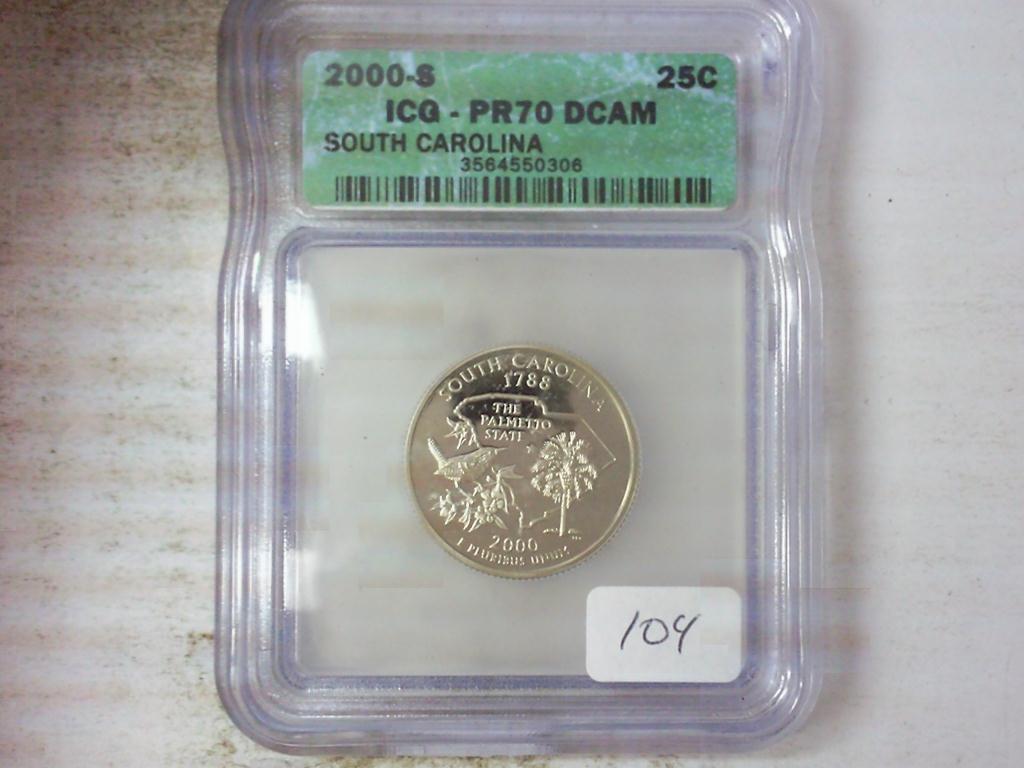 2000-S SOUTH CAROLINA QUARTER ICG PR70 DCAM