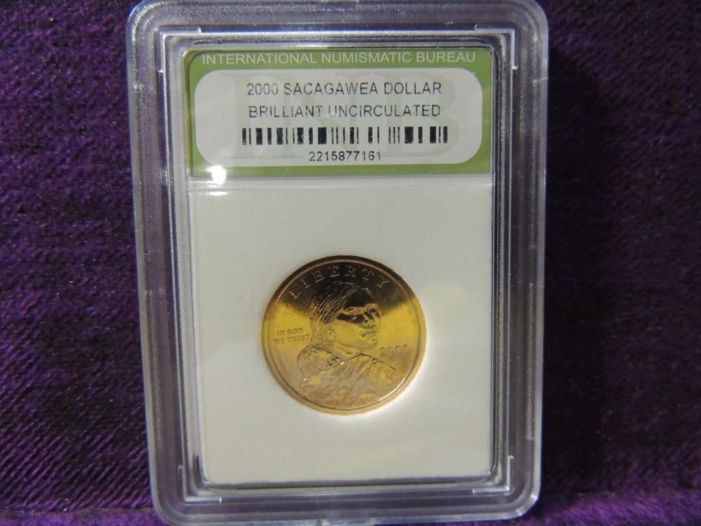 2000 SACAGAWEA DOLLAR UNCIRCULATED BRILLIANT CERTIFIED COINS. INTERNATIONAL NUMISMATIC BUREAU SEALED GRADED COIN. GOOD CONDITION. GENUINE COIN. US CURRENCY. COIN COLLECTIBLE. MONEY COLLECTIBLE. PROTECTIVE CASE. AS SHOWN. SEE PHOTO FOR MORE DETAILS.