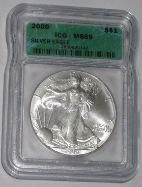 2000 SILVER EAGLE 1oz *CERTIFIED BY ICG MS-69*!! SILVER EAGLE CAME OUT OF SAFE BOX!! ***Coin, Currency & All Items Listed in this auction - Grades, Conditions and Values are not Safe Deposit Coins LLC Responsibilty. Grades, Condition and Values are determined by Consigner(s) & Buyers ONLY