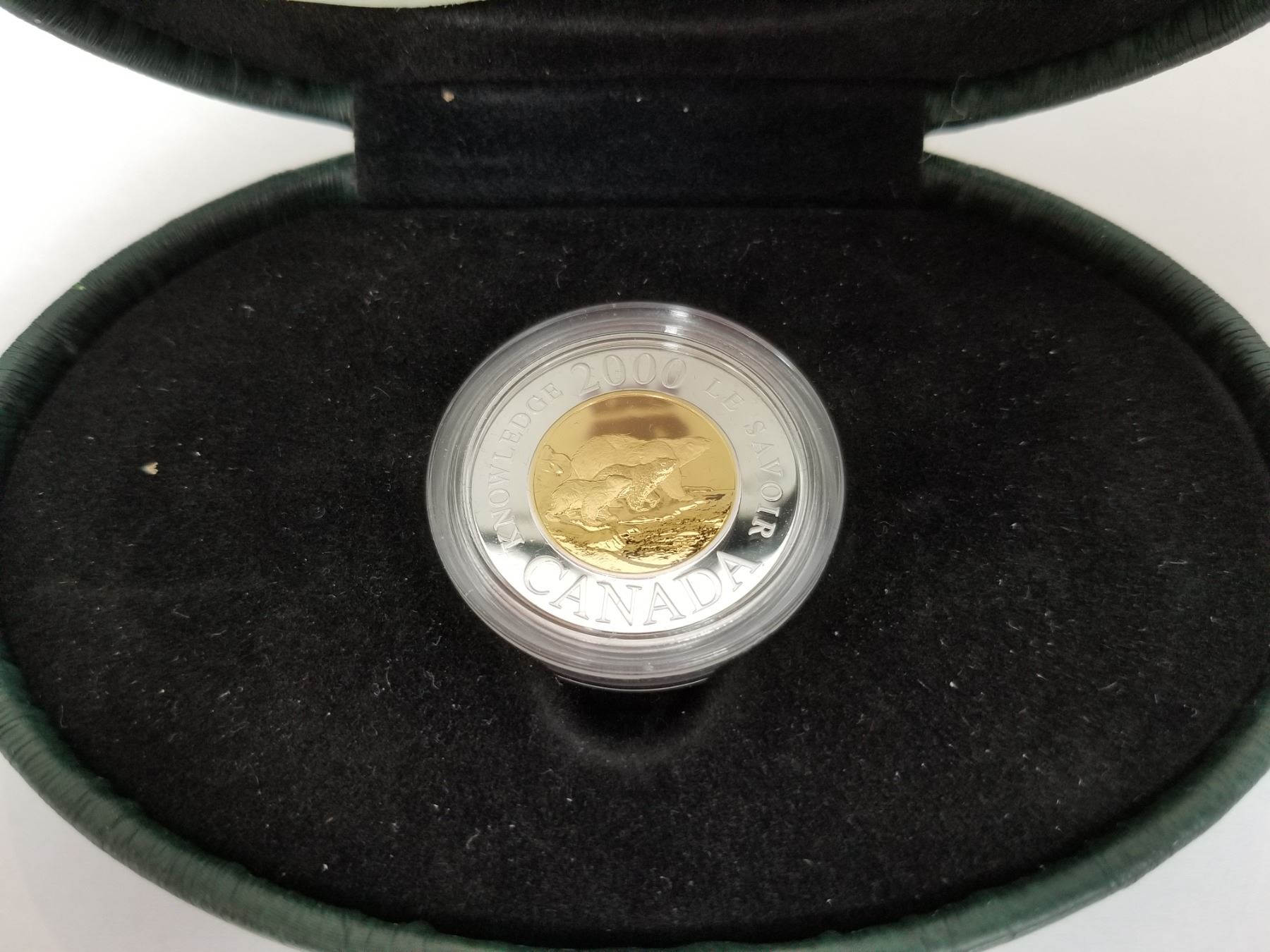 2000 STERLING SILVER $2.00 COIN ? 24 KT GOLD PLATED INNER CORE